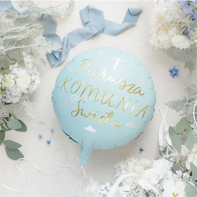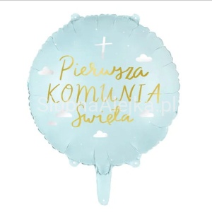 Balon foliowy Pierwsza Komunia Święta Niebieski 45 cm