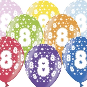 Balony Strong Mix Kolorów 8-me Urodziny 6szt.