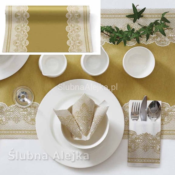 Bieżnik Flizelinowy Paw Złota Koronka 40 x 24 m