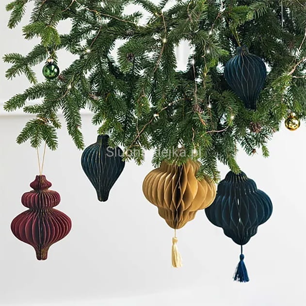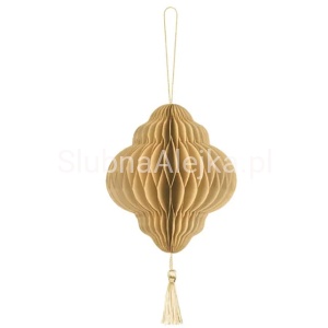 Piękna ozdoba świątecznego drzewka Bombka papierowa honeycomb Latarnia w kolorze beżowym.