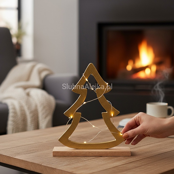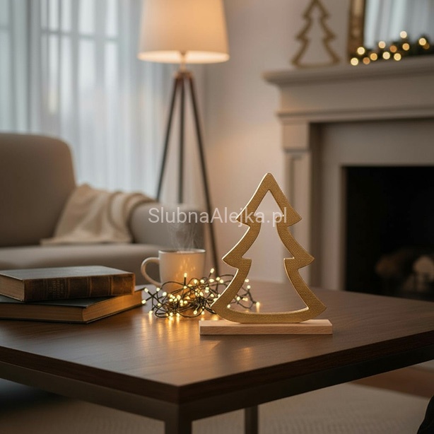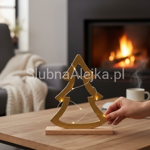 Choinka Świąteczna Złota na Podstawie z Drzewa Mango to świąteczny, sprawdzony element aranżacji