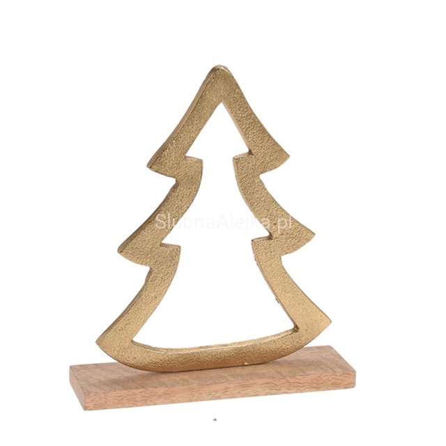 Choinka Świąteczna Złota na Podstawie z Drzewa Mango to urocza i funkcjonalna dekoracja, która sprawdzi się by nadać wnętrzu stylu i świątecznej atmosfery. Dzięki konstrukcji drewna i metalu, dobrze znosi użytkowanie w warunkach komercyjnych.