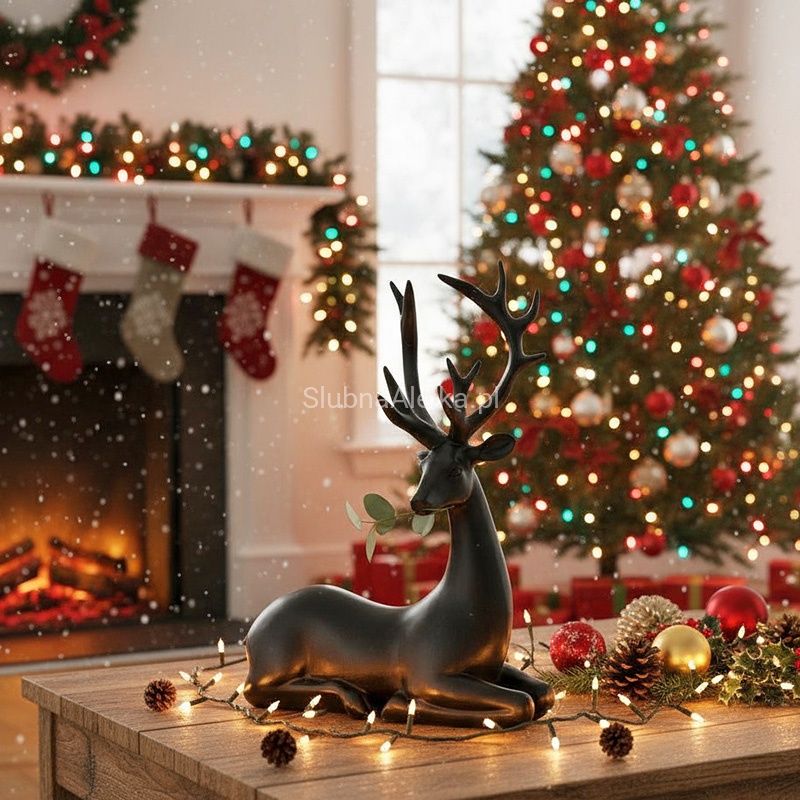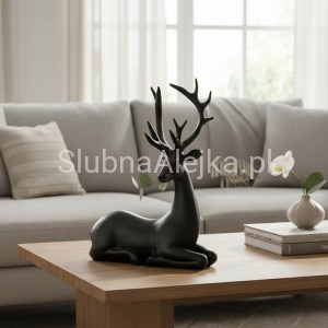 Święta Bożego Narodzenia to czas, w którym symbolika ma ogromne znaczenie, szczególnie jeśli chodzi o dekoracje wnętrz. Od świeczki po zawieszki – wszystkie elementy dobieramy od kątem kolorystycznym oraz występujących na nich symbolach takich jak: renifery, Święty Mikołaj, bałwanki, choinki, czy gwiazdki. Dlatego właśnie uroczy renifer leżący w pięknym czarnym wydaniu będzie idealną ozdobą świątecznego wnętrza w stylu klasycznym, industrialnym, czy loftowym. Wniesie odrobinę magii i luksusu do salonu, jadalni czy sypialni. Będzie również świetnym pomysłem na świąteczny podarunek. Materiał: żywica poliestrowa.