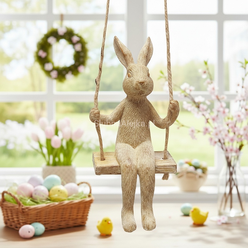 Figurka Wielkanocna Zając na Huśtawce 15 cm