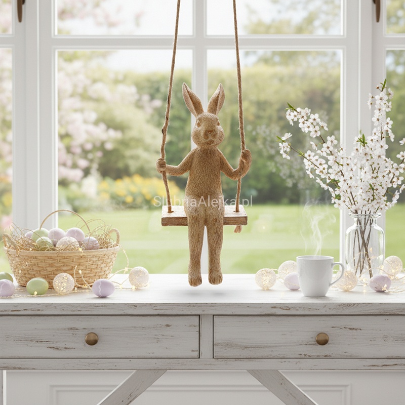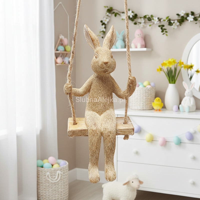 Poszukujesz zachwycających dodatków równie praktycznych, co estetycznych i uniwersalnych w zastosowaniu? Figurka zając na huśtawce z funkcją bujania spełni Twoje oczekiwania!
