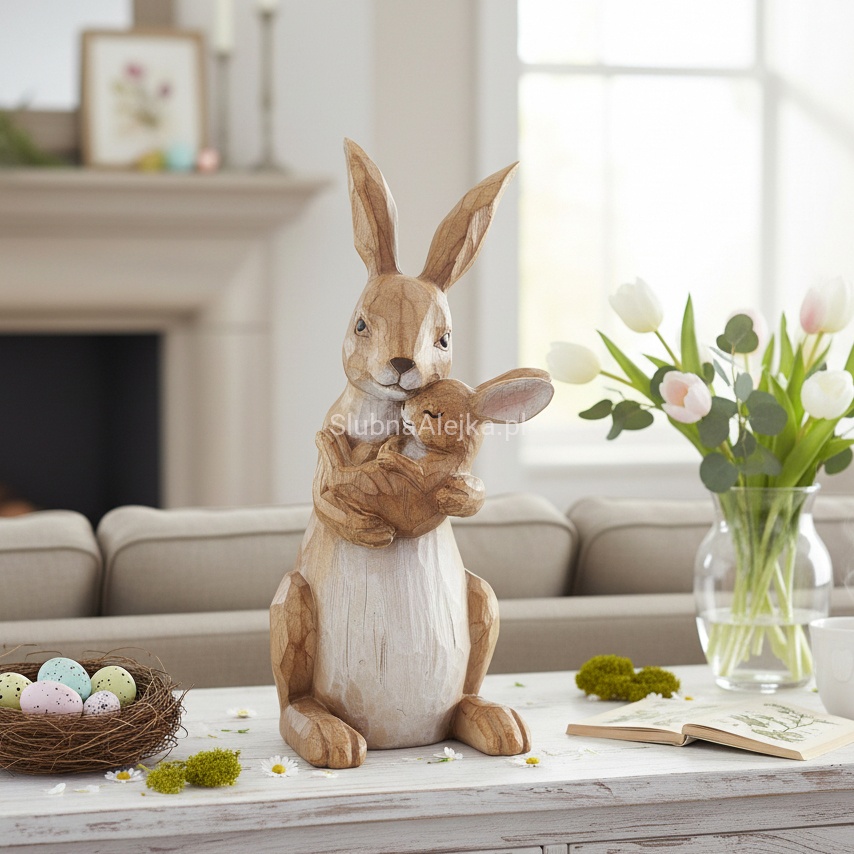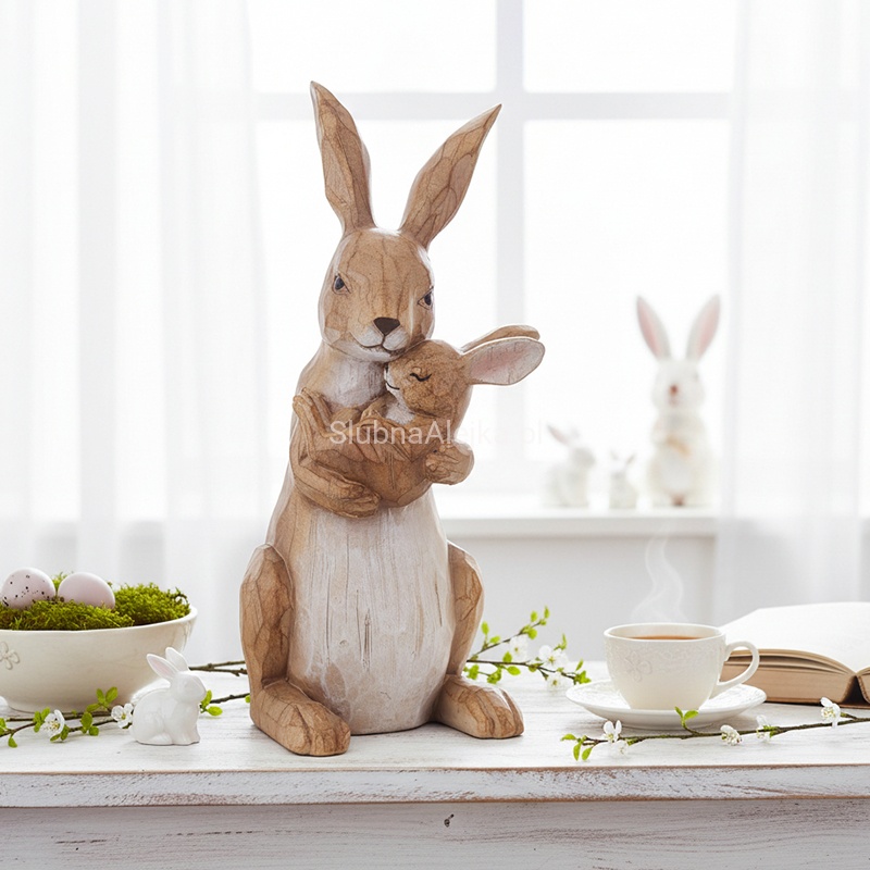 Figurka doskonale prezentuje się na stole wielkanocnym, komodzie, parapecie czy wśród stroików. Subtelne detale i uniwersalna forma sprawiają, że pasuje zarówno do klasycznych, jak i nowoczesnych aranżacji.