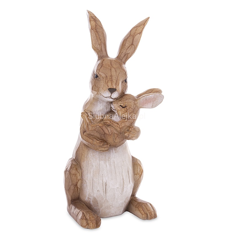 Figurka Zając Wielkanocny Brązowy z Małym Zajączkiem 33 cm