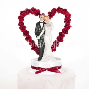 Figurka na Tort Młoda Para i Serce z Róż Bordowa 15 cm
