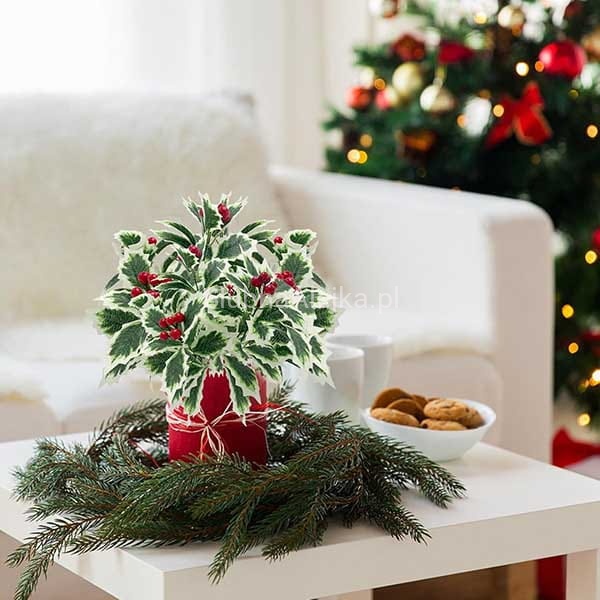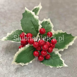 Oferujemy Państwu gałązkę Holly Berry - ostrokrzew na piku wykonane ze sztucznych gałązek ostrokrzewu z pięlnymi, czerwonymo owocami. Najczęściej stanowi bazę do wszelkich kompozycji florystycznych, ale może być także samodzielną ozdobą świąteczną. Do stosowania w domu, jak i na zewnątrz jako ozdoba tarasu, czy ogrodu. Łatwo przymocować go do wianka świerkowego lub girlandy. Praktyczna i trwała ozdoba świąteczna na piku.