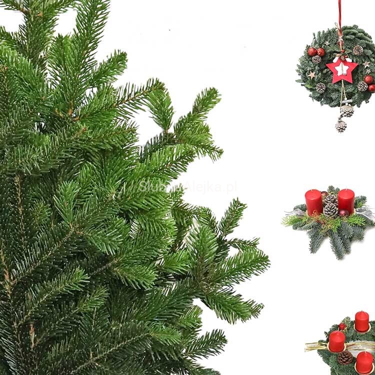 Piękne gałęzie świeżej Jodły Kaukazkiej. Najczęściej stanową bazę do wszelkich kompozycji florystycznych, ale mogą być także samodzielną ozdobą świąteczną. Do stosowania w domu, jak i na zewnątrz jako ozdoba tarasu, czy ogrodu. Łatwo przymocować do nich dodatkowe aplikacje. Udekorowane bombkami lub wstążkami znajdują swoje zastosowanie jako ozdoba świąteczna. Ta żywo zielona gałązka stanowi idealną bazę do wykonania pięknej bożonarodzeniowej dekoracji w przystępnej cenie. W pęku znajduje się 5 szt.