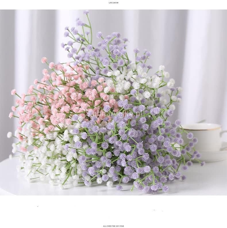 Sztuczny kwiat gipsówki swoim wyglądem do złudzenia przypominają żywą roślinę .Gipsówka jest wykonana z wysokiej jakości tworzywa sztucznego. Gałązka gipsówki ma wysokość 50 cm. Można ją z powodzeniem wykorzystać w bukietach kwiatowych. Sztuczne kompozycje z gipsówką będą przypominać bukiet żywych kwiatów. Stworzysz przepiękne dekoracje, która idealnie nadaje się do wnętrz, biur, mieszkań. Bukiet z gipsówki to idealny pomysł jako dekoracja wazonu.