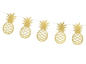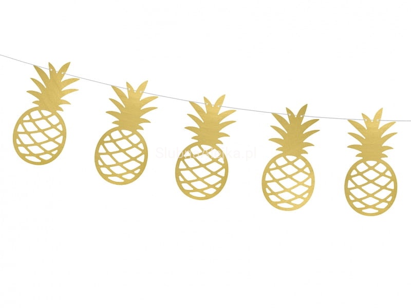 Girlanda papierowa Aloha - ananasy. Wykonana z papieru metalizowanego wycinana laserowo. Zestaw do samodzielnego złożenia. Pięknie ozdobią salę urodzinową w klimacie hawajskim.