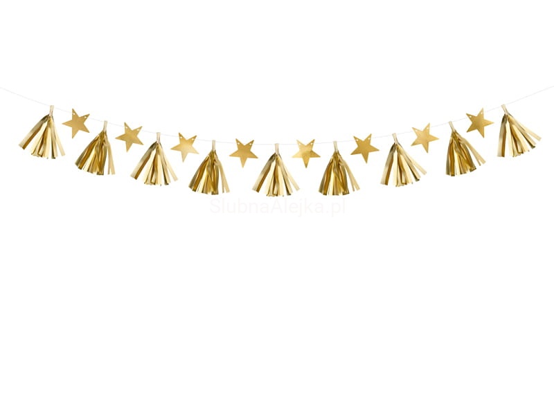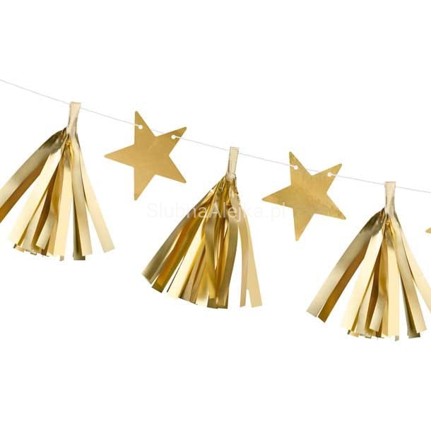 Girlanda Złote Gwiazdy i Frędzle 1,3m