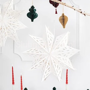 Piękna, świąteczna gwiazda papierowa pięcioramienna wykonana z białego ażurowego papieru