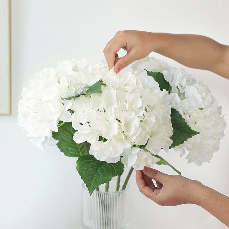 Kwiaty hortensji są genialnym wyborem na wielogodzinne uroczystości. Jeśli zamiast naturalnej wiązanki postawisz na bukiet pełnych kwiatu hortensji 70 cm możesz być spokojna - przetrwa w nienagannym stanie przez wiele długich godzin. To wspaniały sposób na wykonanie trwałych dekoracji ślubnych, które będą się świetnie prezentować, a do tego mogą zostać ponownie wykorzystane przy kolejnej okazji.