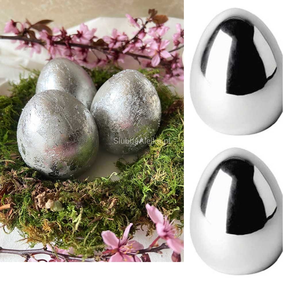 Jajko Wielkanocne Ceramiczne Srebrne małe - dla wszystkich miłośników pięknych i niebanalnych dekoracji wnętrz. Oryginalna ozdoba , która urozmaici wnętrze lokalu, restauracji, czy domu. Designerski duży kształt jajka doda blasku i świeżości wnętrzom na święta. Jajka wystarczy dodać drobne kwiatki i rzeżuchę lub zaaranżować w ciekawych misach szklanych z dodatkiem zieleni.