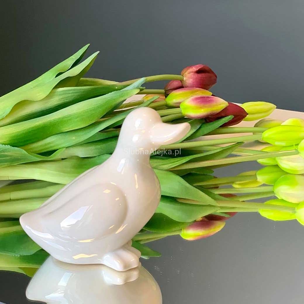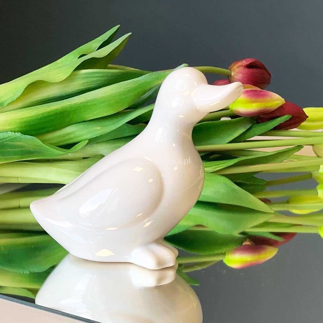 Urocza Kaczka wielkanocna wykonana z białej ceramiki szkliwionej. Radosna kaczka będzie wspaniałą dekoracją każdego pięknego wnętrza. Ozdoby wielkanocne symbolizują nowe życie - odradzającą się ziemię i nadchodzącą wiosnę. Niech więc ozdobi piękne, wielkanocne stoły. Wprowadzi radość i nadzieję na ciepłe wiosenne dni. Będzie również miłym, świątecznym podarunkiem dla bliskich.