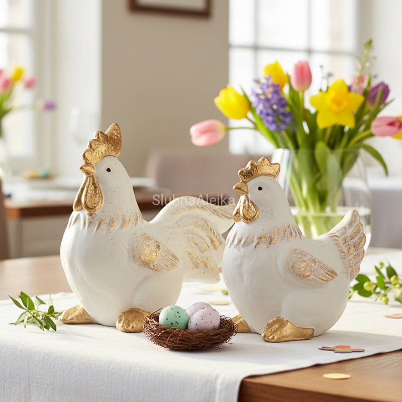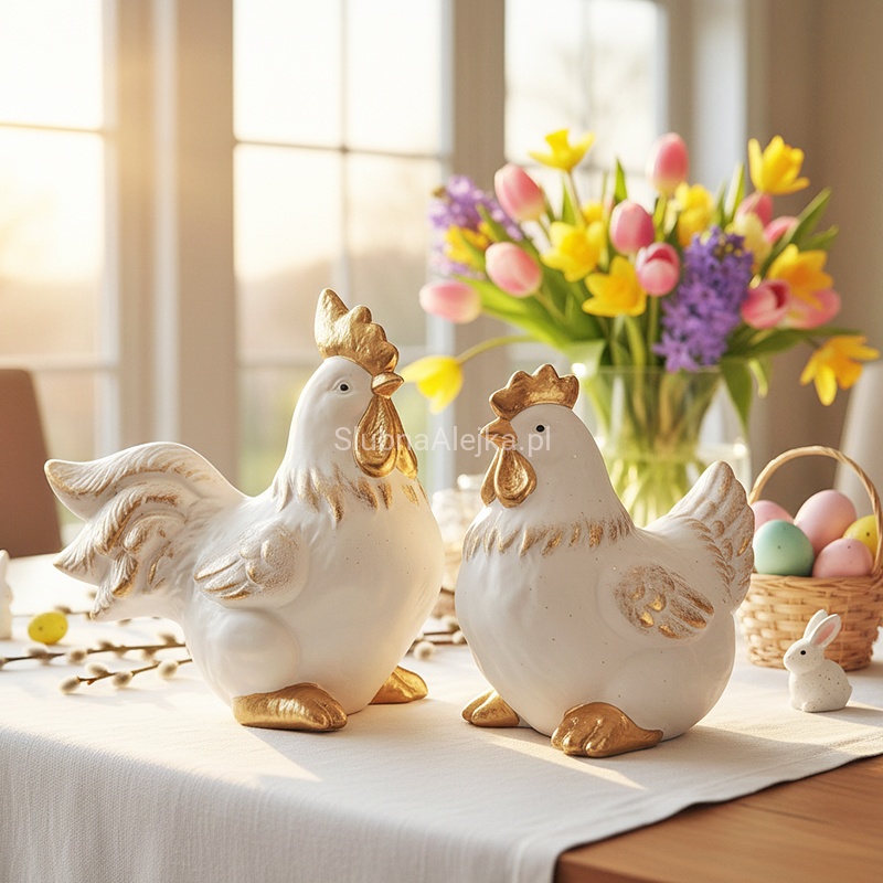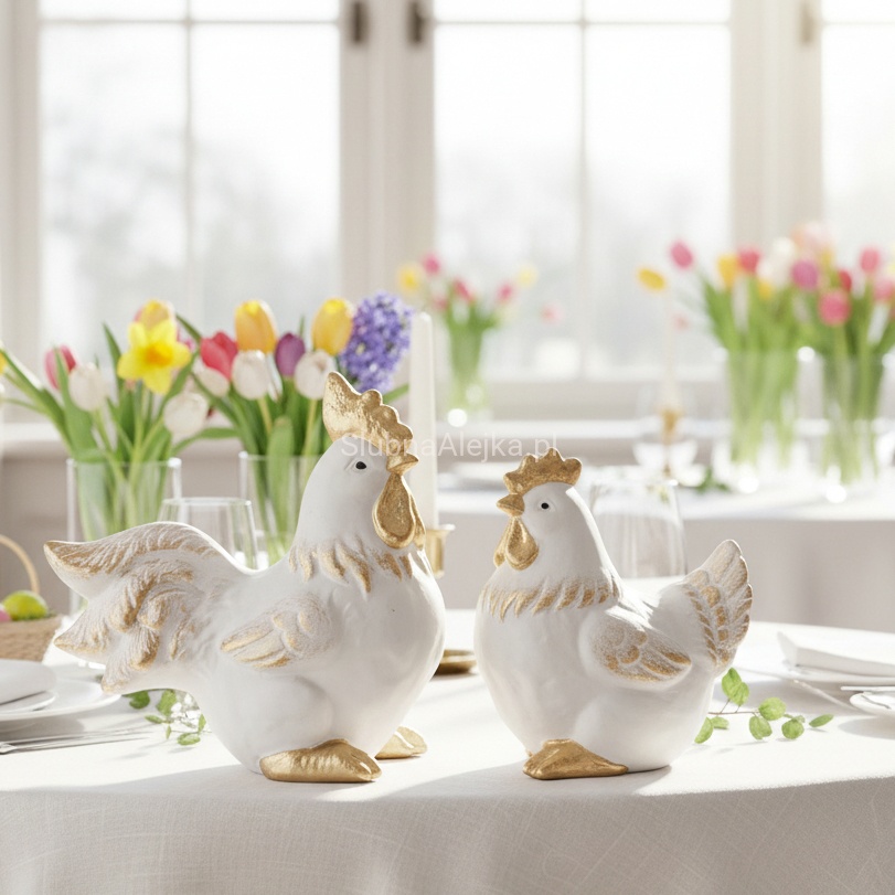 Wyjątkowa dekoracja kogut biało - złoty wielkanocna dekoracja Twojego wnętrza!