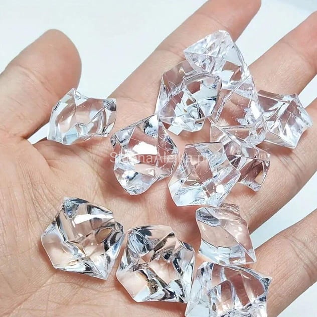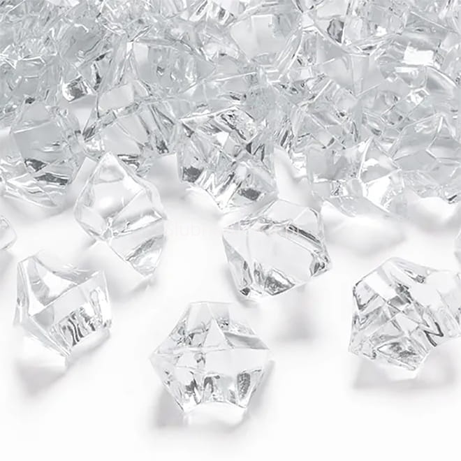 Kryształki lodu świetnie sprawdzą się w roli błyszczącego elementu w kompozycjach podwodnych – pięknie wyglądają na dnie wysokich wazonów, w których zaaranżowano świeczniki ze świec pływających. Wymiary 2,5 cm x 2,1 cm.