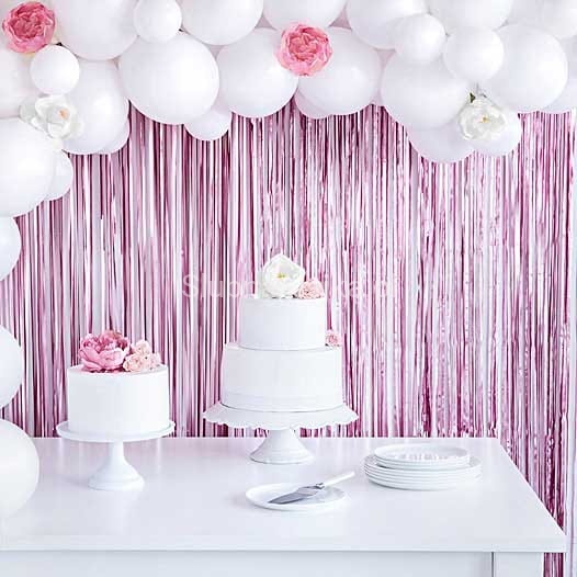 Kurtyna Party o metalicznym wykończeniu to przepiękna kolorystycznie i niedroga dekoracja, którą można wykorzystać do dekoracji dowolnie wybranych miejsc. Sprawdzi się doskonale jako forma wisząca do dekoracji cetralnej za Młodą Parą, dekoracji filarów, czy ścian. Rozmieszczenie kilku dekoracji jest dowolne, ale najbardziej popularne jest zawieszenie ich w podobnych odcieniach kolorystycznych pod sufitem zarówno w sali weselnej, jak i pod namiotem ogrodowym, czy w altanie. Po zakończonej uroczystości girlandy można schować i zabezpieczyć przed kolejnym weselem.