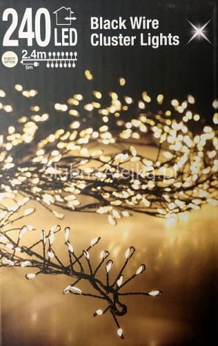 Lampki 240 LED 2,4 m RYŻ BIAŁE CIEPŁE ŚWIATŁO CZARNY DRUCIK
