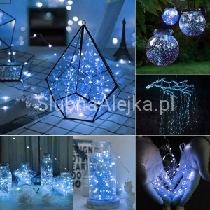 Światełka ledowe na baterię to najnowszy, a zarazem bardzo praktyczny trend w dekoracji wnętrz i restauracji. Sznur lampek dekoracyjnych 80 LED (80 punktów świetlnych) na srebrnym, cieniutkim druciku zasilanym baterią. Do wykorzystania przy tworzeniu wyjątkowych dekoracji ślubnych, komunijnych, czy świątecznych. Drucik ledowy przepięknie będzie komponował się na stołach pomiędzy wazonami z kwiatami, girlandami świątecznymi i zastawą Świecą ciepłym światłem, dodadzą uroku każdemu wnętrzu. Drucik można kształtować według własnych preferencji.