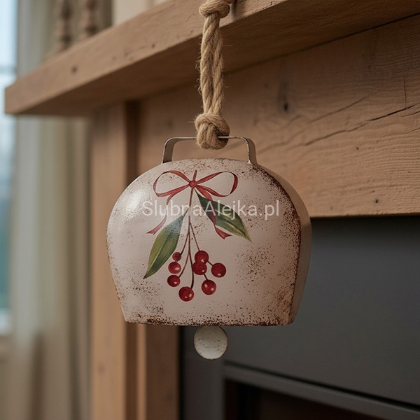 Święta Bożego Narodzenia to czas, w którym symbolika ma ogromne znaczenie, szczególnie jeśli chodzi o dekoracje wnętrz. Od świeczki po zawieszki – wszystkie elementy dobieramy od kątem kolorystycznym oraz występujących na nich symbolach takich jak: renifery, Święty Mikołaj, bałwanki, choinki, czy gwiazdki. Dlatego właśnie uroczy, lekko patynowany metalowy dzwonek zawieszka z symbolem gałązki świątecznej i jutowym sznurkiem ułatwiającym zawieszenie ozdoby będzie bardzo nastrojową ozdobą świątecznego wnętrza w stylu klasycznym, rustykalnym, czy eco. Wniesie odrobinę świątecznej magii do salonu, jadalni czy sypialni. Wykonany z metalu, patynowany. Będzie również świetnym pomysłem na świąteczny podarunek.