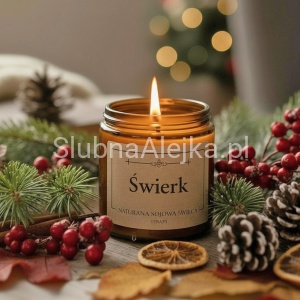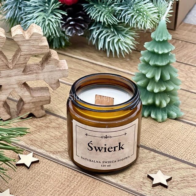 Naturalna Świeca Sojowa w stylowym słoiczku o pięknym zapachu Świerku to niezwykla urokliwa ozdoba całoroczna oraz świetny pomysł na prezent. Każda świeca wykonana jest ręcznie i bardzo precyzyjnie z wosku sojowego oraz certyfikowanych olejków zapachowych. Bez dodatków chemicznych i szkodliwych substancji, świeczki te pozwalają na skupienie się na odpoczynku, a przy okazji tworzą wyjątkową aurę w naszych domach. Ozdobią każde wymagające wnętrze. Po świece sięgamy także wyjątkowo chętnie w okresie świątecznym. Towarzyszą nam zwykle podczas długich rodzinnych spotkań, budując przytulny i ciepły nastrój wnętrz. Wyjątkowo mocno kojarzą się z czasem świątecznym.