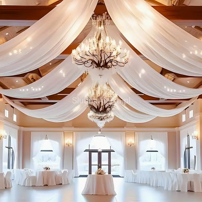 Masz do udekorowania dużą powierzchnię? Miękka, mocna i lekko błyszcząca oraganza w dużej roli, która ładnie udrapowana zarówno wewnątrz, jak i na zewnątrz stworzy eleganckie dekoracje na śluby i wszelkie przyjęcia okolicznościowe.