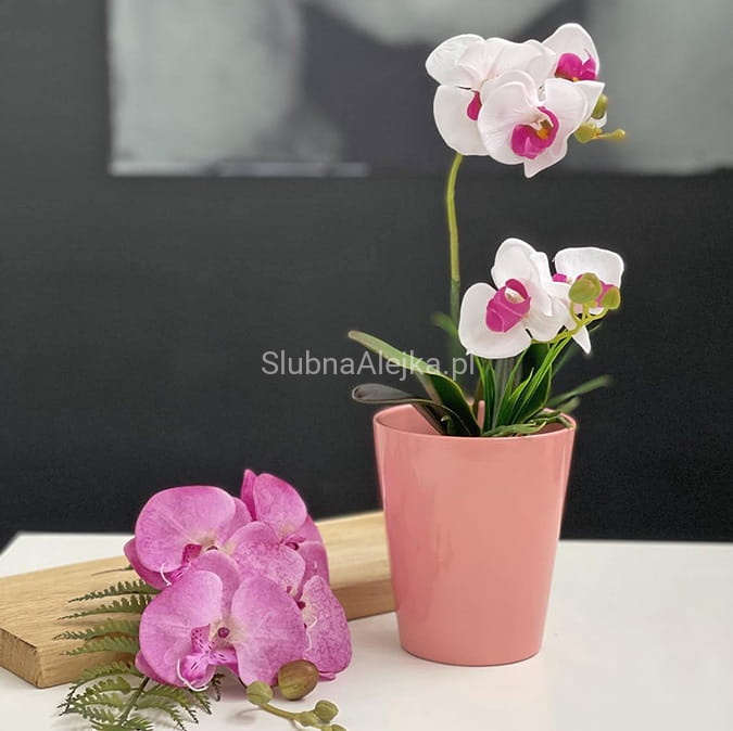 Osłonka ceramiczna na doniczkę jest pastelowa i przypomina klasyczną osłonkę na storczyk w donicy. W przypadku rustykalnej aranżacji ceramika łączona jest często z drewnianymi akcesoriami jak plastry drewna. W aranżacji nowoczesnej natomiast tego rodzaju dodatki dekoracyjne mogą zostać połączone z metalem lub szkłem. W osłonce wspaniale prezentują się storczyki, róże lub niewielkie kwiatki.