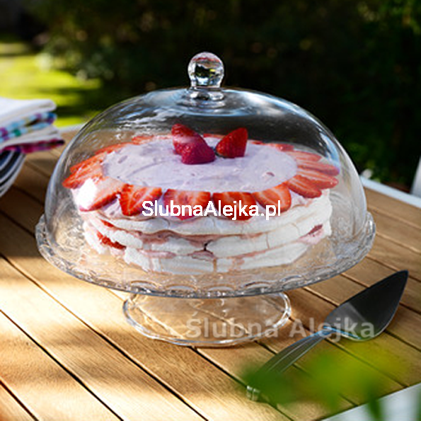 Patera szklana na Candy Bar z kloszem służy przechowywaniu przede wszystkim smakołyków podczas wesela. Dzięki pokrywce wszystkie wyroby są chronione nie tylko przed insektami, lecz też przed wysuszeniem. Patera może służyć do prezentacji ciast, ale także owoców. Jej fason jest stanowczym dowodem artyzmu i wysokiego poziomu wykonania. Pokrywa natomiast jest użyteczna i mocna. Na jego czubku znajduje się mały uchwyt pomagający w odkrywaniu i zakrywaniu naczynia bez ryzyka, że pokrywka wyleci z ręki.