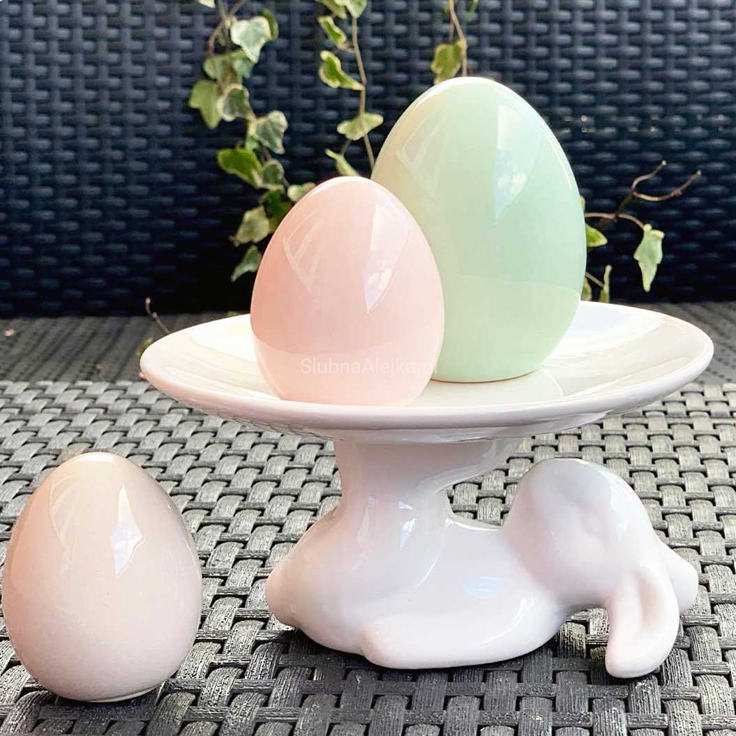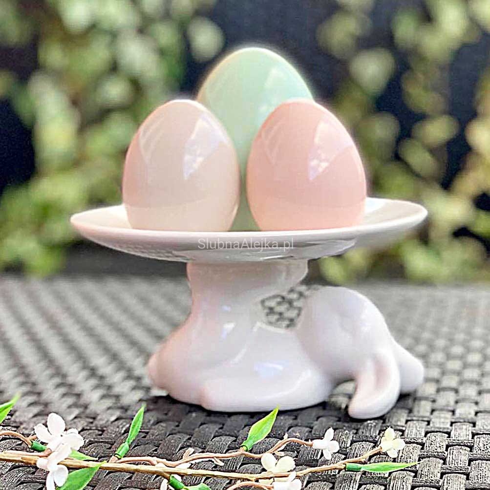 Urocza paterka wielkanocna wykonana z ceramiki. Idealna na stół wielkanocny. Pięknie skomponuje się z jajeczkami i wielkanocnymi dekoracjami. Zwyczaj przynoszenia prezentów przez wielkanocnego zajączka przywędrował do nas z Niemiec. Niech więc ozdobi piękne, wielkanocne stoły. Wprowadzi radość i nadzieję na ciepłe wiosenne dni. Będzie również miłym, świątecznym podarunkiem.