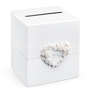 Zebranie życzeń oraz pieniędzy przekazywanych w kopertach przez gości weselnych, czy komunijnych będzie znacznie łatwiejsze z użyciem praktycznej skrzyneczki. Przepięknie i praktyczne pudełko na telegramy z pięknym kwiatowym sercem. Doskonałe uzupełnienie dekoracji ślubnych, bądź komunijnych.