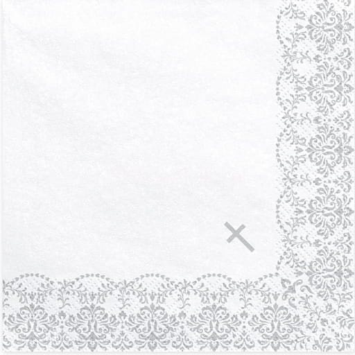 Serwetki Komunijne Srebrny Ornament z Krzyżykiem 33x33cm