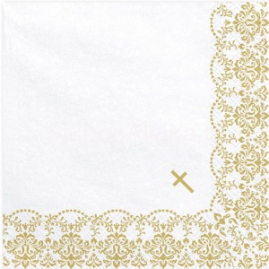 Serwetki Komunijne Złoty Ornament z Krzyżykiem 33x33cm