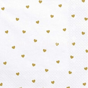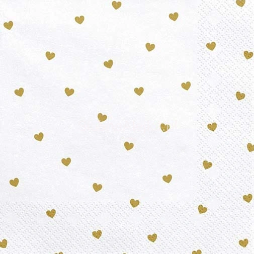 Serwetki Papierowe Białe w Złote Serduszka 33x33cm