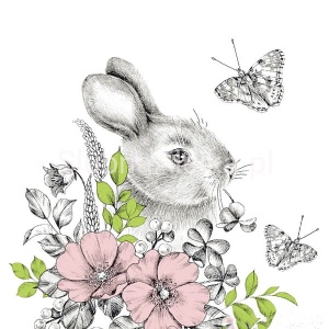 Serwetki Papierowe Wielkanocne Zajączek i Kwiaty 33x33cm
