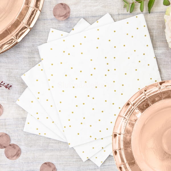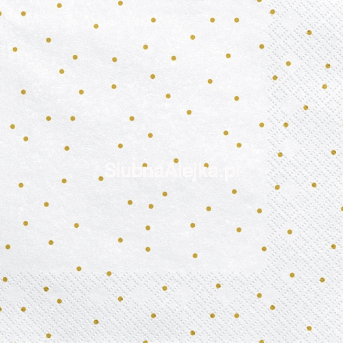 Serwetki ślubne trójwarstwowe. Delikatne, białe w urocze złote kropeczki.