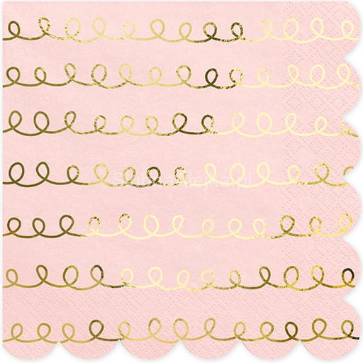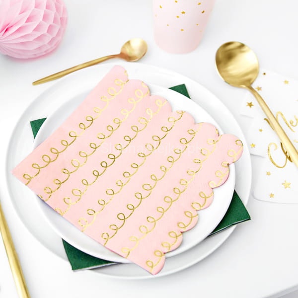 Serwetki trójwarstwowe. Delikatne, jasnoróżowe w urocze złote szlaczki. Serwetki są bardzo istotnym elementem dekoracyjnym stołu. Bez nich nawet najbardziej wykwintny posiłek nie będzie smakował tak wyśmienicie, jak powinien. Dlatego wychodzimy Państwu naprzeciw i przedstawiamy szeroką gamę serwetek.