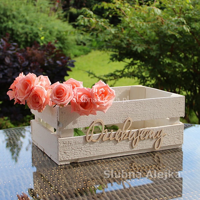 Skrzynka Ślubna Bielona z Napisem Dziękujemy