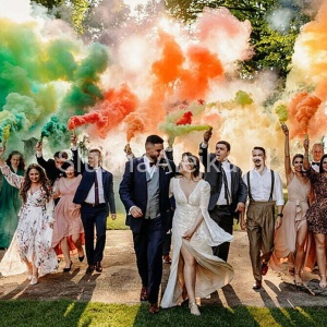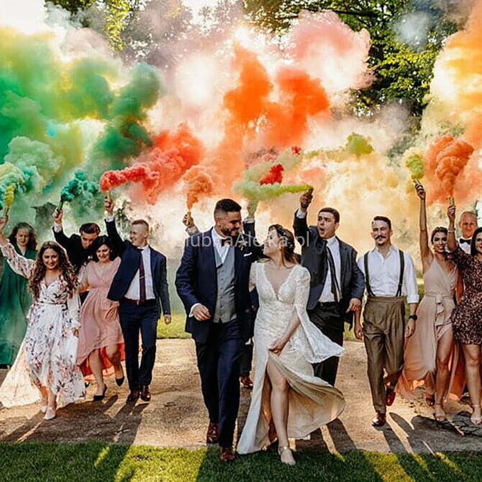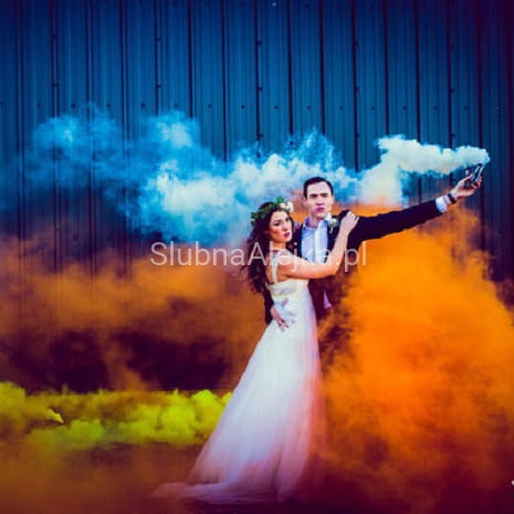 Świece dymne to znakomity dodatek do sesji fotograficznych, szczególnie ślubnych, który w sprawi, że monochromatyczne stroje Pary Młodej będą się wyróżniały na tle barwnego dymu. Należy jednak pamiętać o kilku podstawowych zasadach bezpieczeństwa podczas użycia świec. Produkt jest przeznaczony do stosowania tylko na wolnym powietrzu. Powinien być używany tylko przez osoby pełnoletnie.