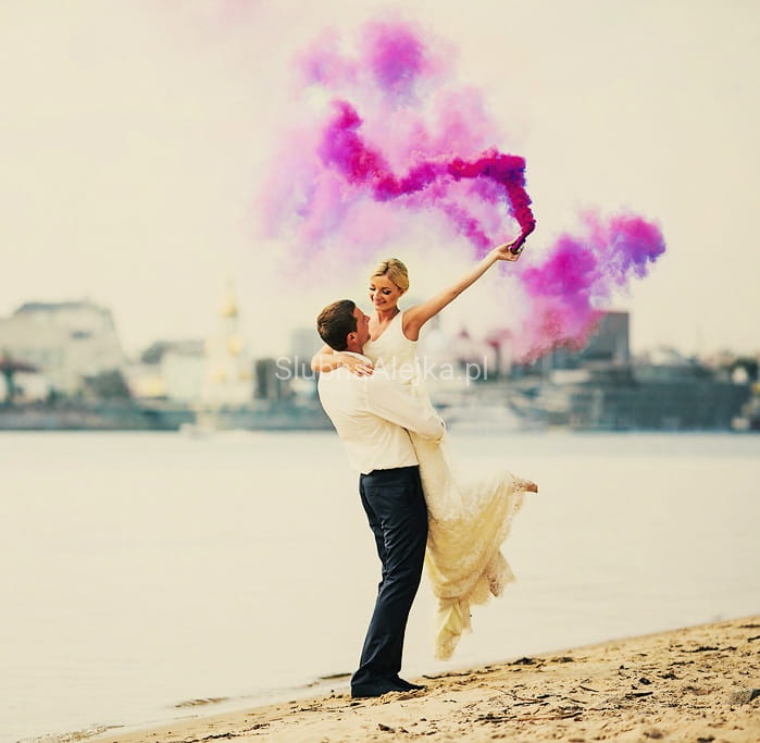 Nasze świece dymne do sesji działają do 60 sekund. Trzeba się zatem spieszyć ze zrobieniem dobrej fotografii. Warto wybrać pogodę bezwietrzną lub z lekkim wiatrem. Wówczas nie będzie ryzyka nagłej zmiany kierunku dymu. Najlepiej też wykonywać sesję w ciągu dnia, kiedy wszystkie koloróy rac są najlepiej widoczne. Niewątpliwie efekt takiej sesji będzie olśniewający. Zapraszamy do zakupu świec dymnych na stronie internetowej Slubna-alejka.com.pl.