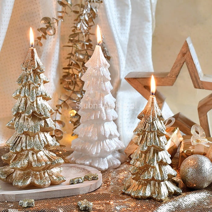 Świeca Ozdobna Figurka Choinka Złota Duża 21cm