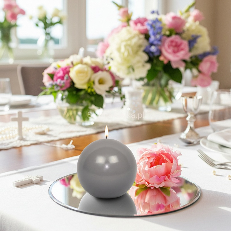 Świeca ozdobna w kształcie kuli to doskonały wybór do codziennej aranżacji wnętrz, jak i na specjalne okazje – śluby, komunie, chrzciny, święta, urodziny czy romantyczne kolacje. Sprawdzi się również jako elegancki dodatek do prezentu lub element większych kompozycji dekoracyjnych.