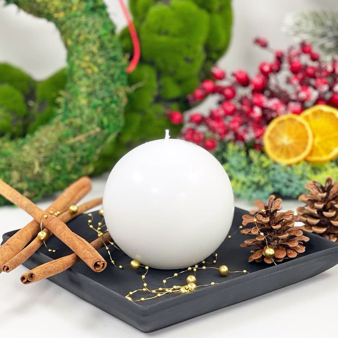 Świeca Ozdobna Kula Matowa Biała 10cm