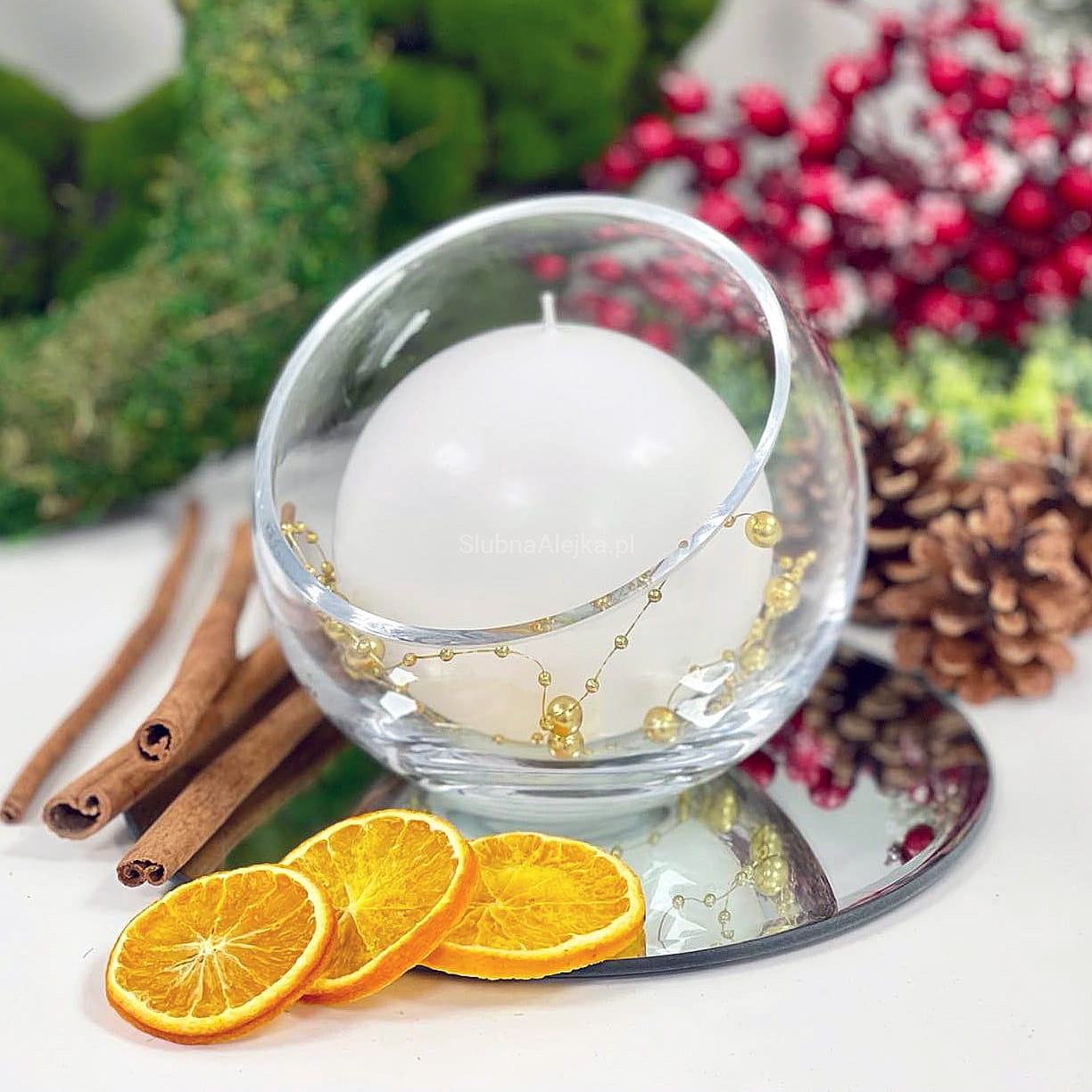 Świeca bezzapachowa, biała w kształcie kuli. Nada intymnego, przytulnego klimatu, oświetli pomieszczenie, doda luksusu i pewnej tajemniczej aury. W salonie, sypialni, łazience, czy podczas przyjęcia – świece ozdobne sprawdzą się w każdej z tych aranżacji. W połączeniu z dostępnymi w naszym sklepie szklanymi lampionami oraz dekoracyjnym piaskiem, stworzy prostą, ale zarazem bardzo ubogacającą wnętrze dekorację.