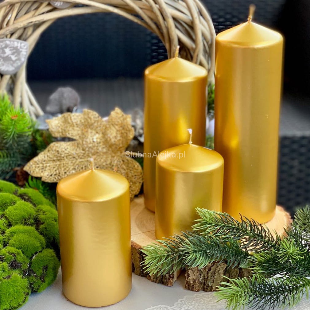 Świeca Ozdobna Pieńkowa Classic Metalik Złota 15cm Φ 8cm
