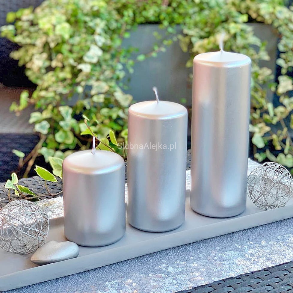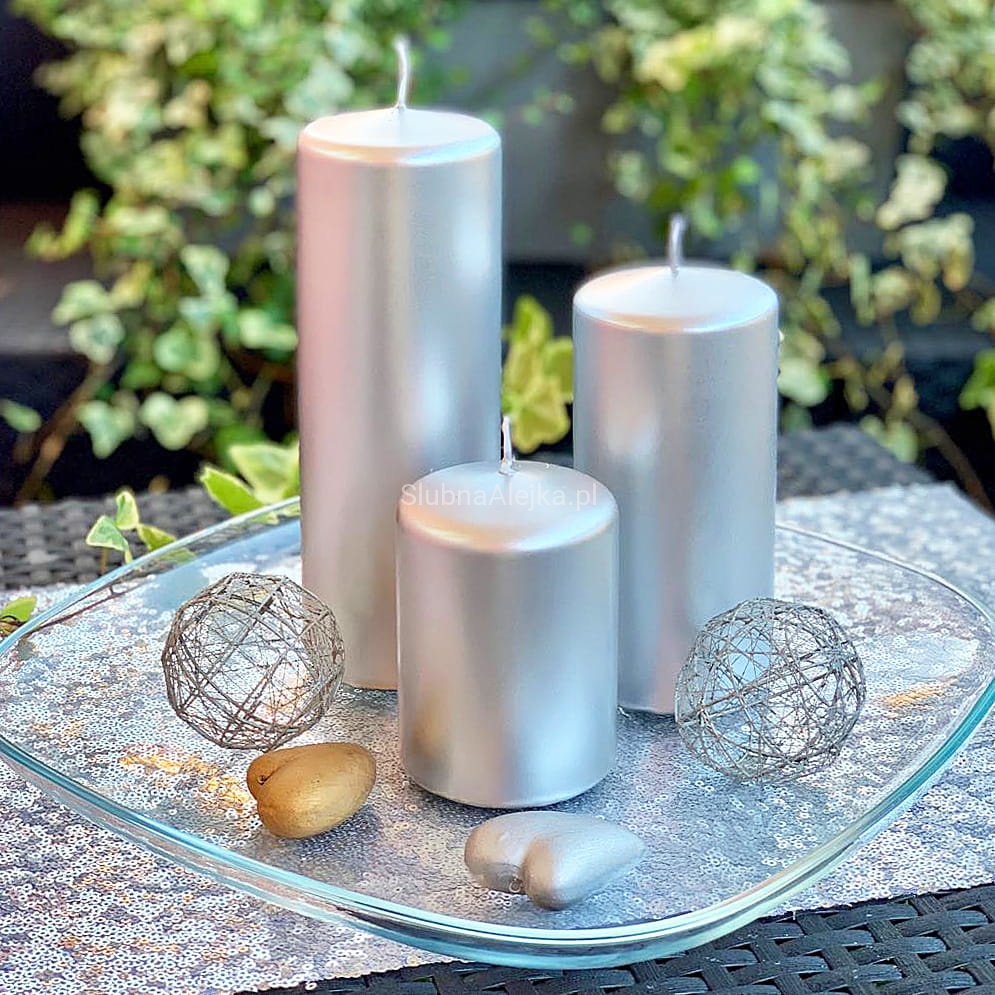 Świeca Ozdobna Pieńkowa Metalik Srebrny to elegancka świeca z metalicznym wykończeniem. Uformowana w walec świeca może być ozdobą samą w sobie, ale także jednym z elementów dekoracyjnych. Znakomicie sprawdzi się jako centralny punkt stroika bożonarodzeniowego, ale także ślubnych kompozycji florystycznych. Można ją także postawić w towarzystwie świec o innych wysokościach na lustrzanym podstawku. Wówczas płomień odbija się w zwierciadle, a cała aranżacja zamienia się w błyszczący lampion. Świece pieńkowe palą się bardzo długo, a zatem możemy przestać martwić się o tę część dekoracji sali. Aby stworzyć prosty świecznik wystarczy ozdobny żwirek, podstawka i świeca. Bardzo często najprostsze rozwiązania są najlepsze i najbardziej oczekiwane. Komplet świec o różnej wysokości może być miłym i praktycznym prezentem dla bliskiej osoby.