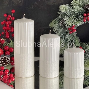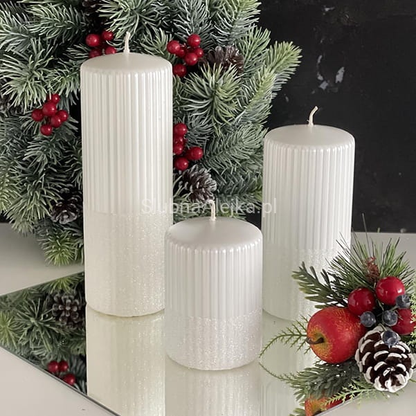 Świeca Ozdobna Pieńkowa Rylen Brokat Metalik 10cm Biały
