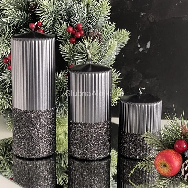 Świeca Ozdobna Pieńkowa Rylen Brokat Metalik 10cm Czarny